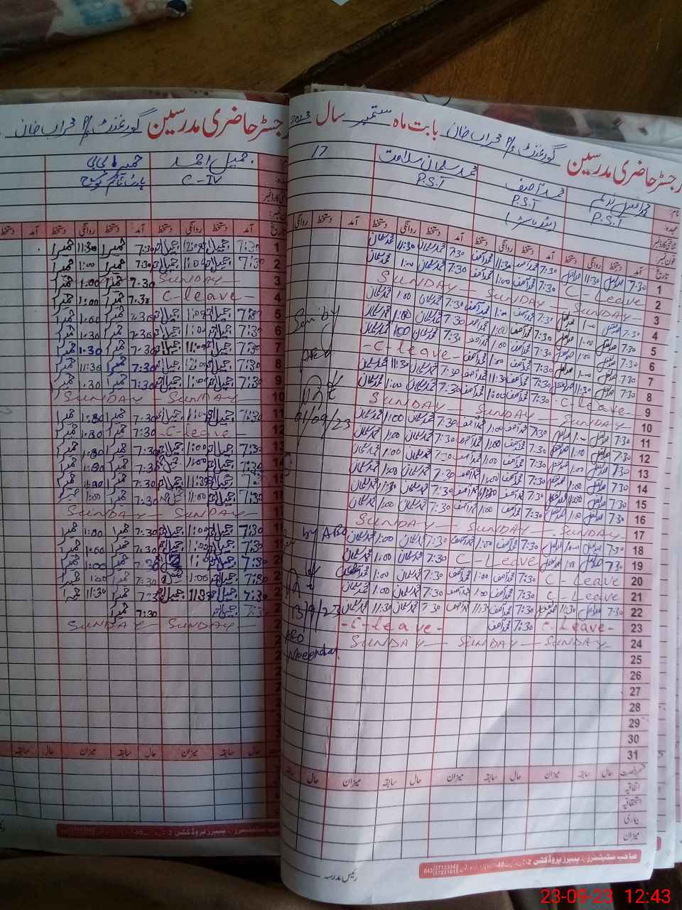 | CNIC | Full Name | Designation | R/C | Absence During Last Calender Month |