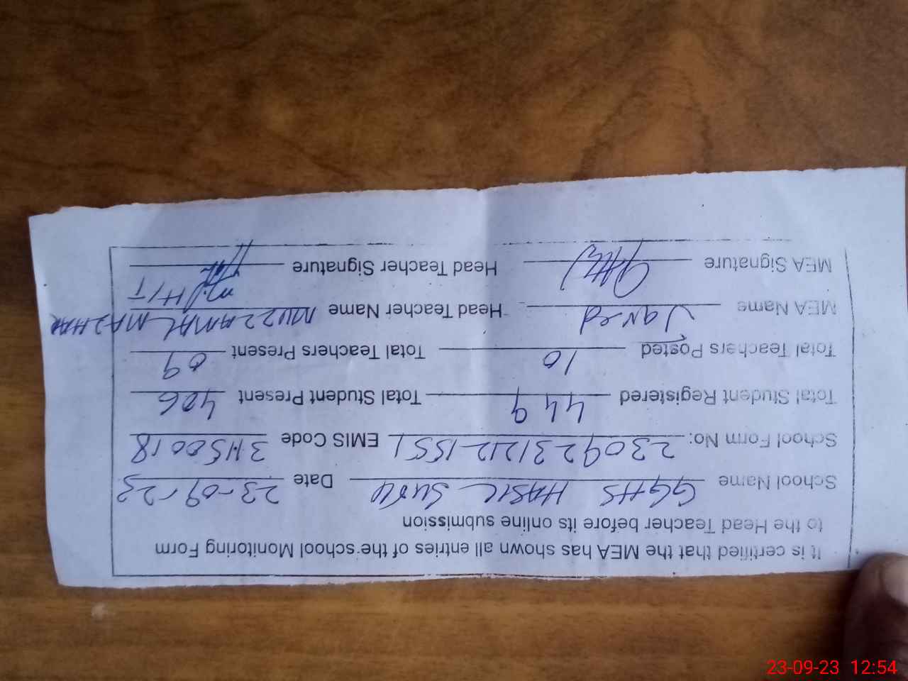| EMIS Code: 31150018 | Name of School: GGHS HASIL SARU | |||