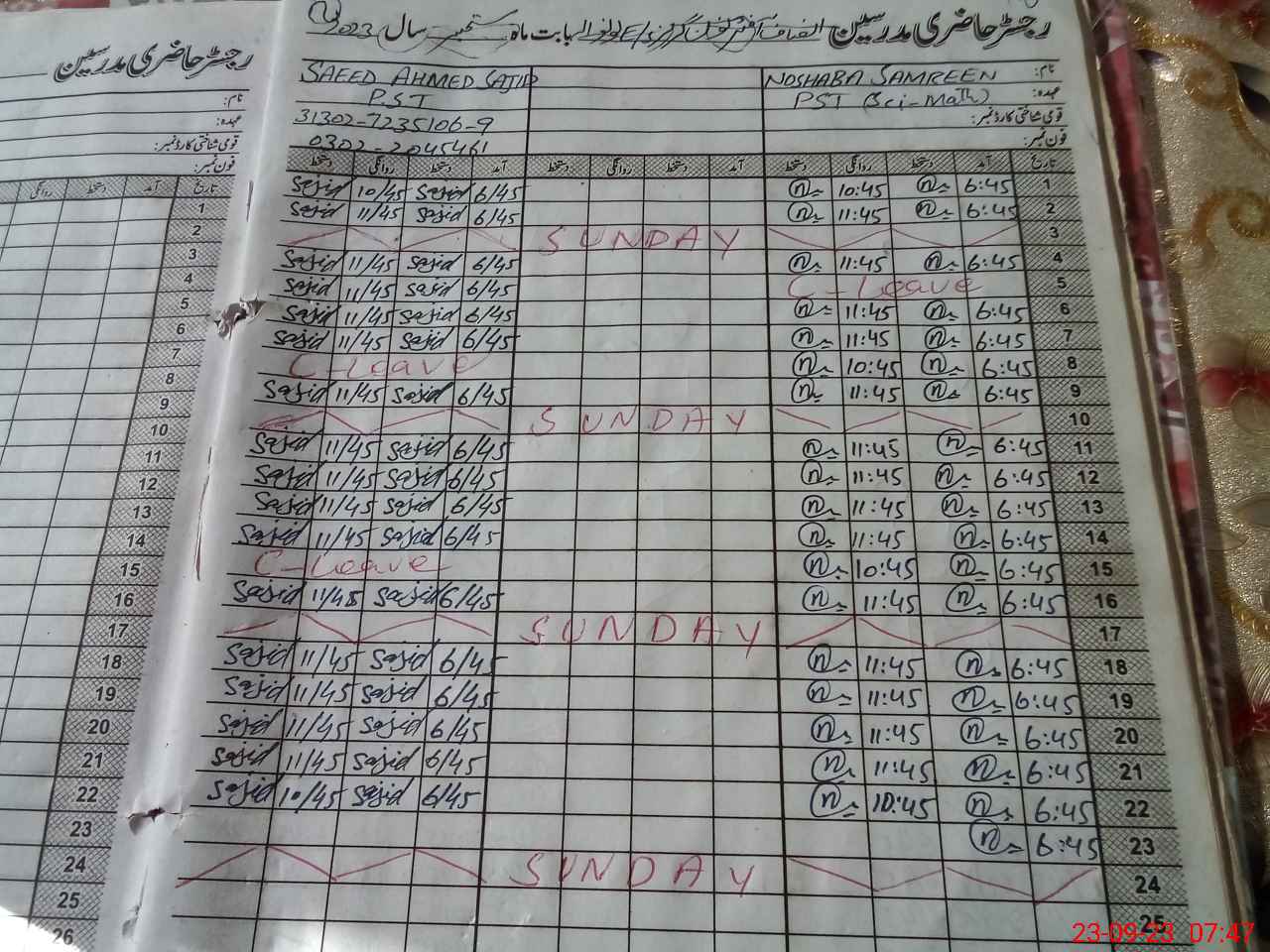 | 31**** | Sa**** Ah**** Sa**** | 1 | 0 | 0 | 0 | 0 | 0 | 0 | 0 | 0 | 0 | Absent (Un-Authorized) | |