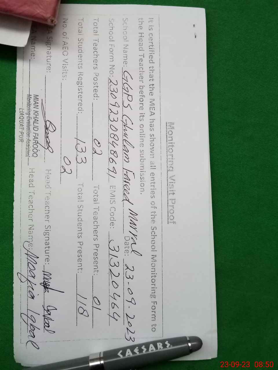 | EMIS Code: 31320464 | Name of School: GGPS GHULAM FAREED MARAL | |||