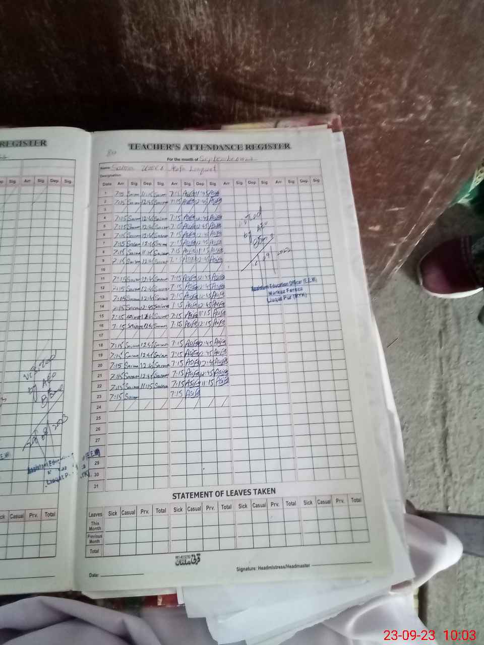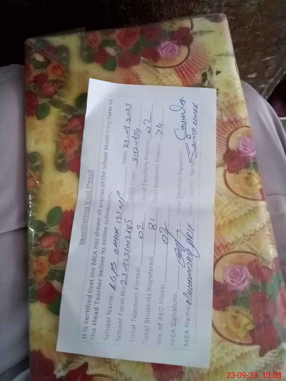 | Attendance Register | Head Teacher | MEA with School | Visit Proof |