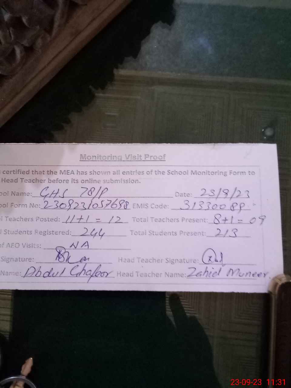 | EMIS Code: 31330089 | Name of School: GHS CHAK 78/P | |||