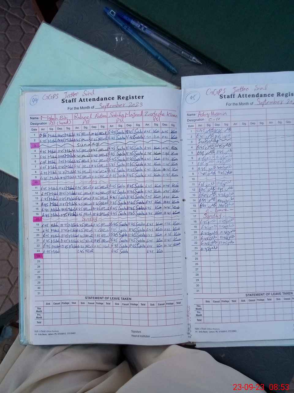 | Monitoring Date: 23-09-2023 | Start Time: 23-09-2023 08:34 AM | End Time: 23-09-2023 08:53 AM | Name of MEA: Kh**** Ah**** | |