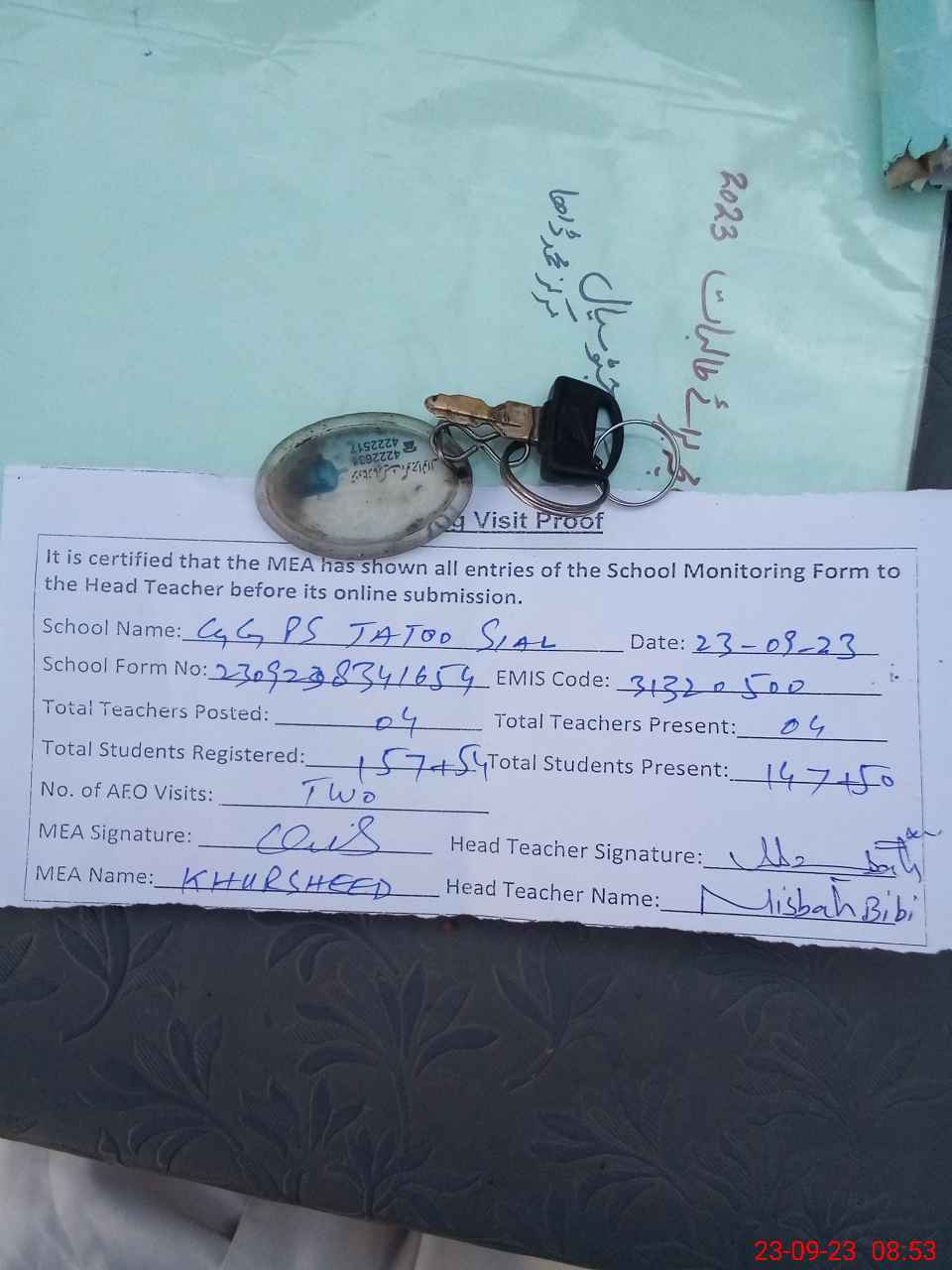 | Attendance Register | Head Teacher | MEA with School | Visit Proof |