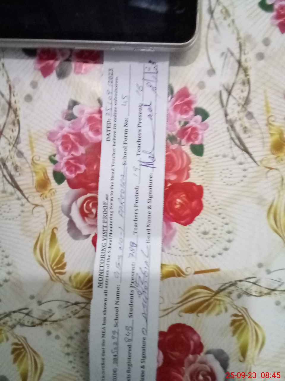 | Name: AB**** MA**** Designation: (School Headmaster's/Headmistress's) Inch HM Phone/Cell Number: 03**** |