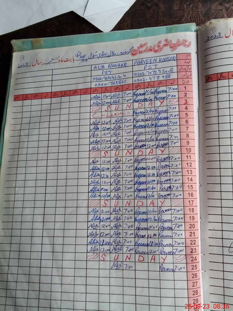 | CNIC | Full Name | Designation | R/C | Absence During Last Calender Month |