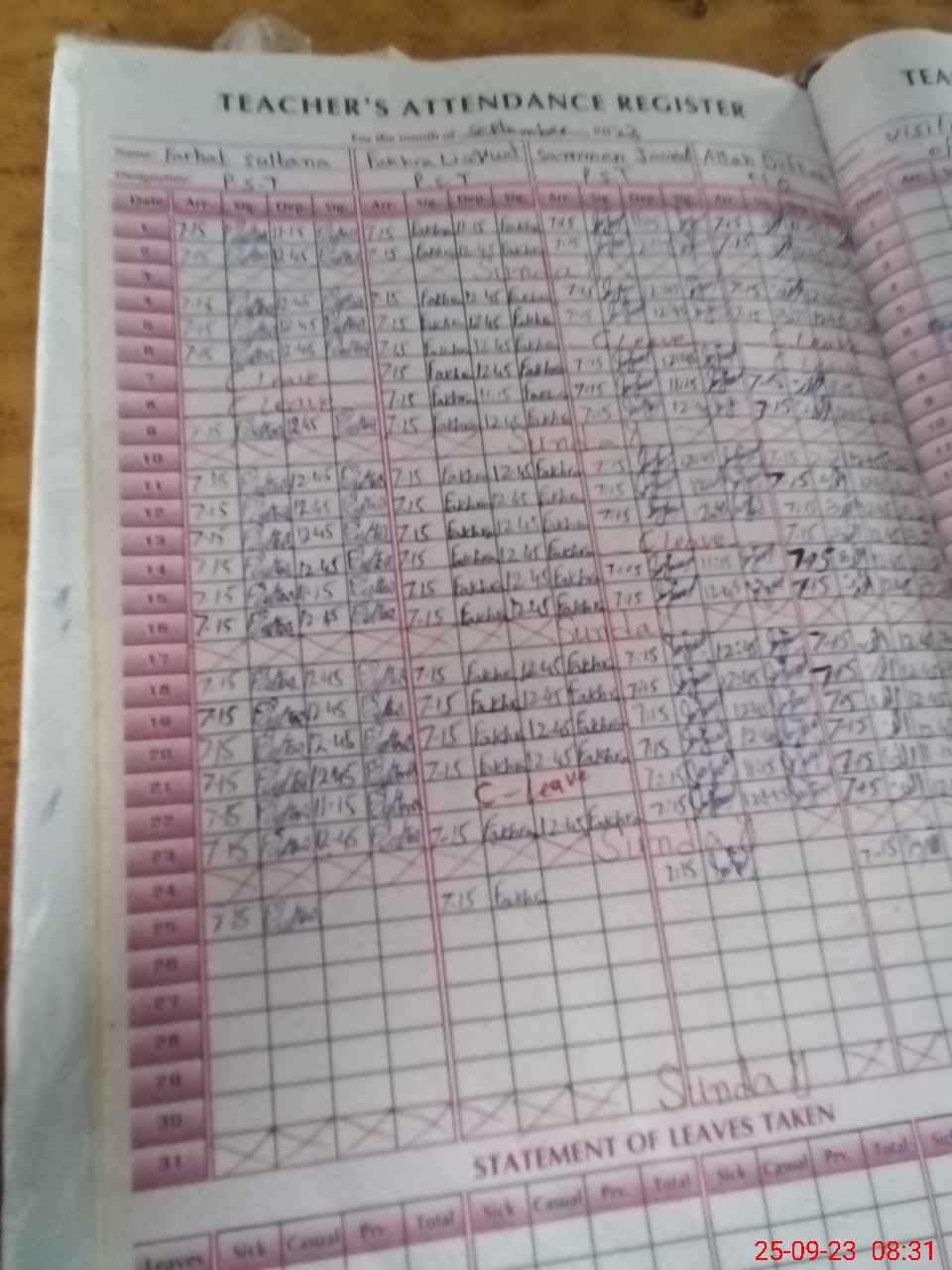 | Leave | Duty | Absent | Maternity | Medical | Ex- Pak |