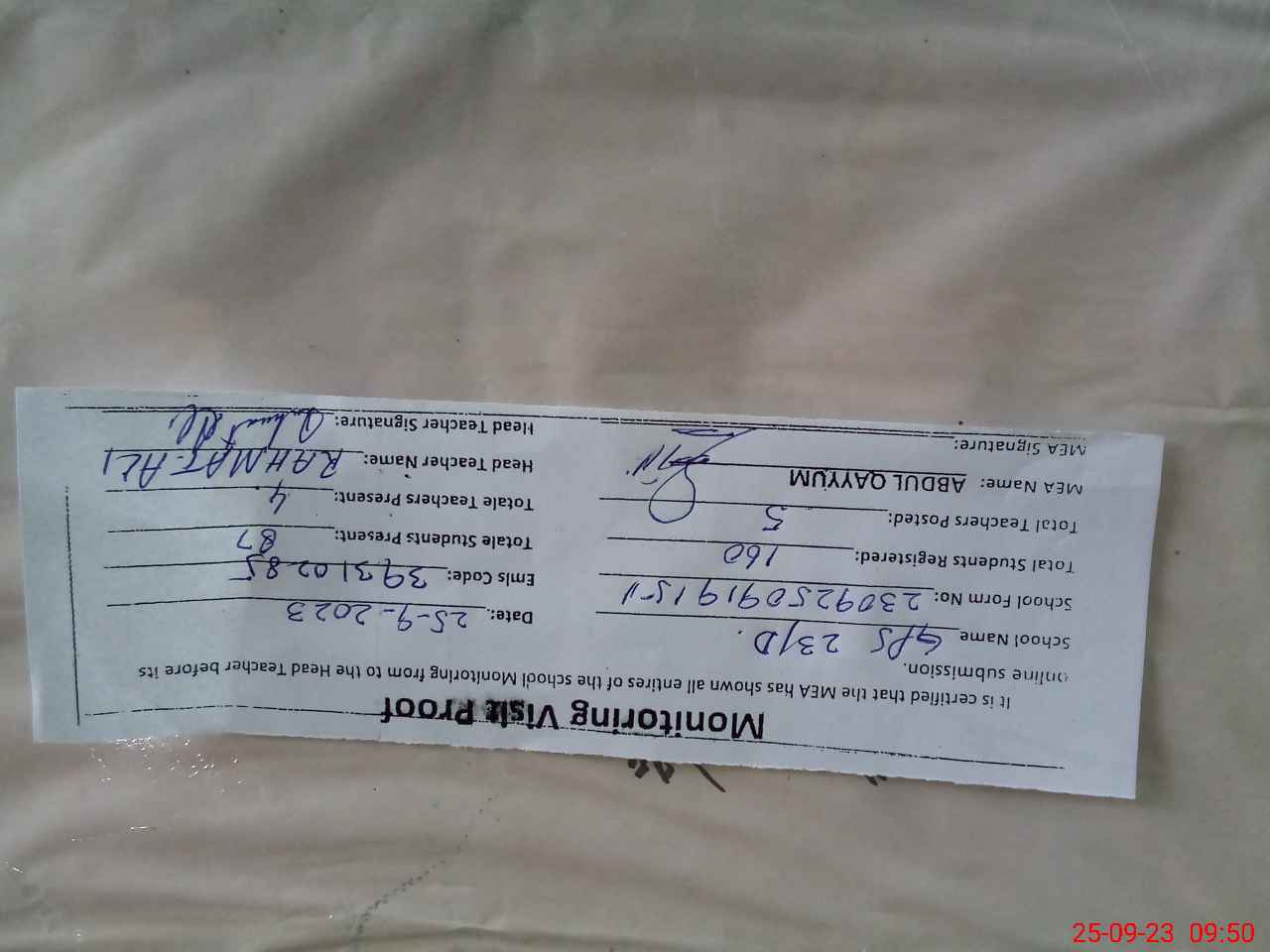 | EMIS Code: 39310285 | Name of School: GPS 23-D | |||
