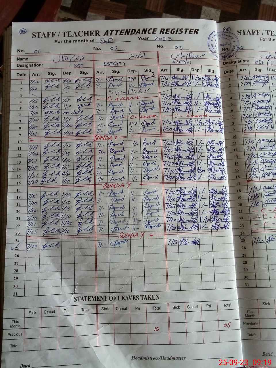 | CNIC | Full Name | Designation | R/C | Absence During Last Calender Month |