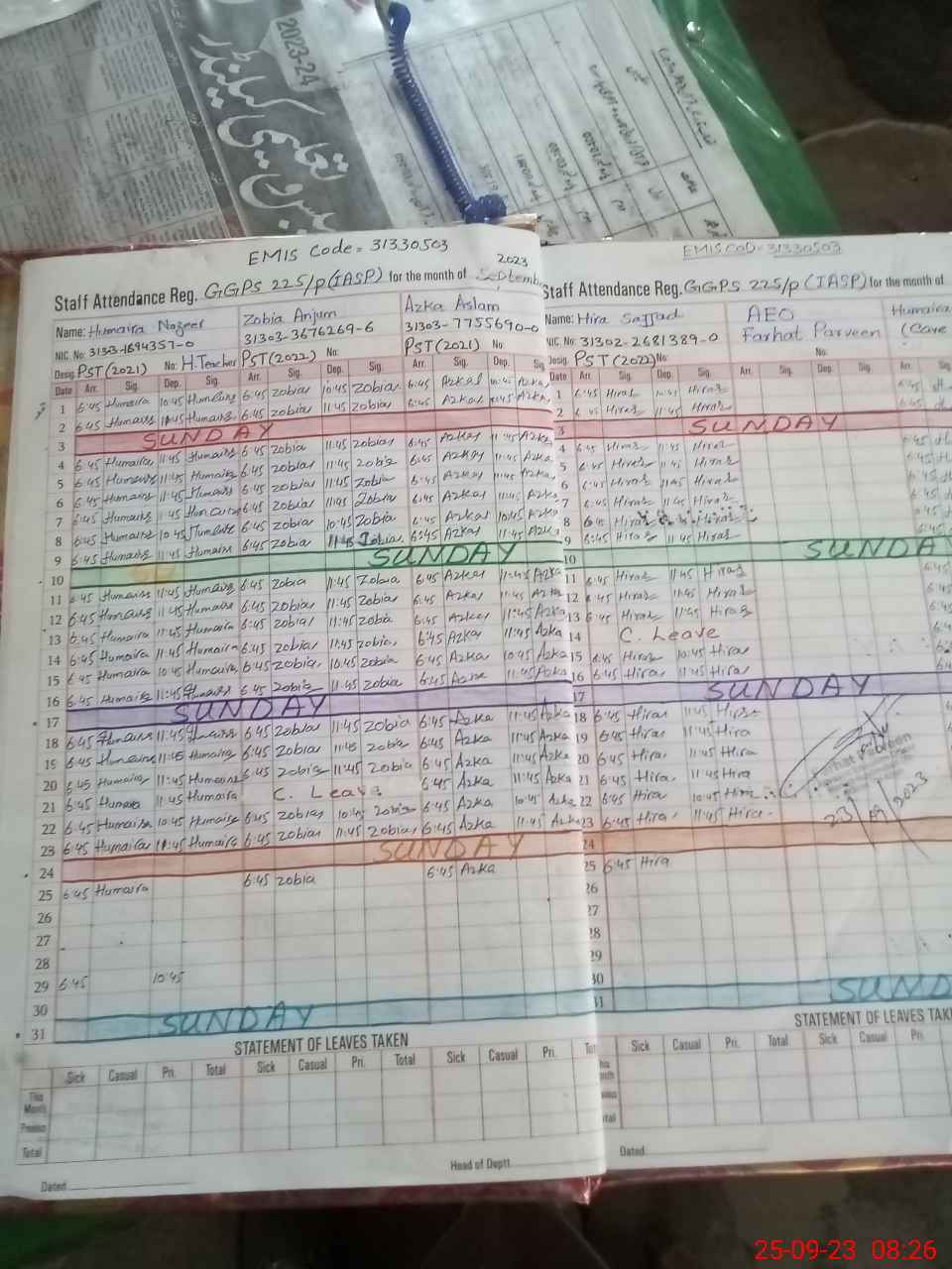 | Leave | Duty | Absent | Maternity | Medical | Ex- Pak |