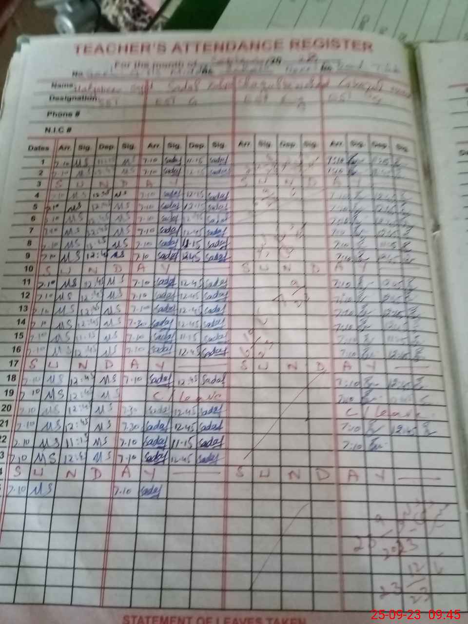 | Name: Ar**** Ba**** Designation: (School Headmaster's/Headmistress's) S.S.T.(Science) Phone/Cell Number: 03**** |