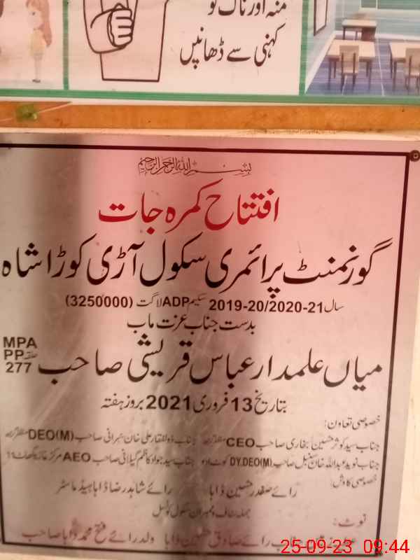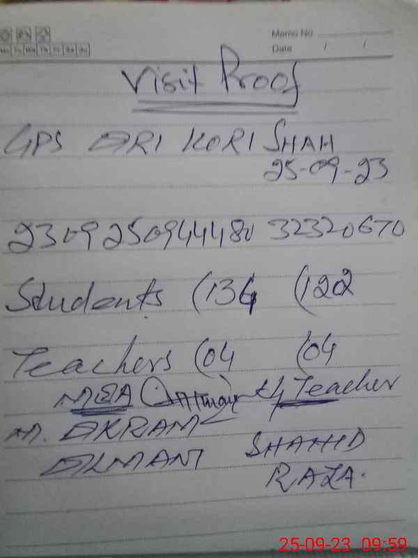 | EMIS Code: 32320670 | Name of School: GPS ARI KORA SHAH | |||