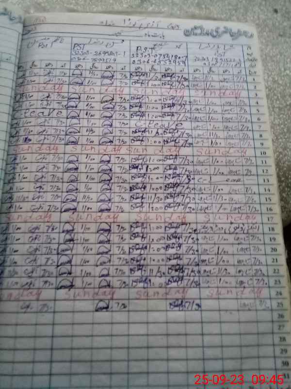 | CNIC | Full Name | Designation | R/C | Absence During Last Calender Month |