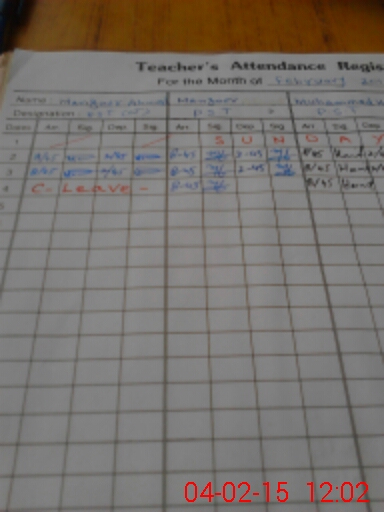 | Attendance Register | Head Teacher | MEA with School | Visit Proof |