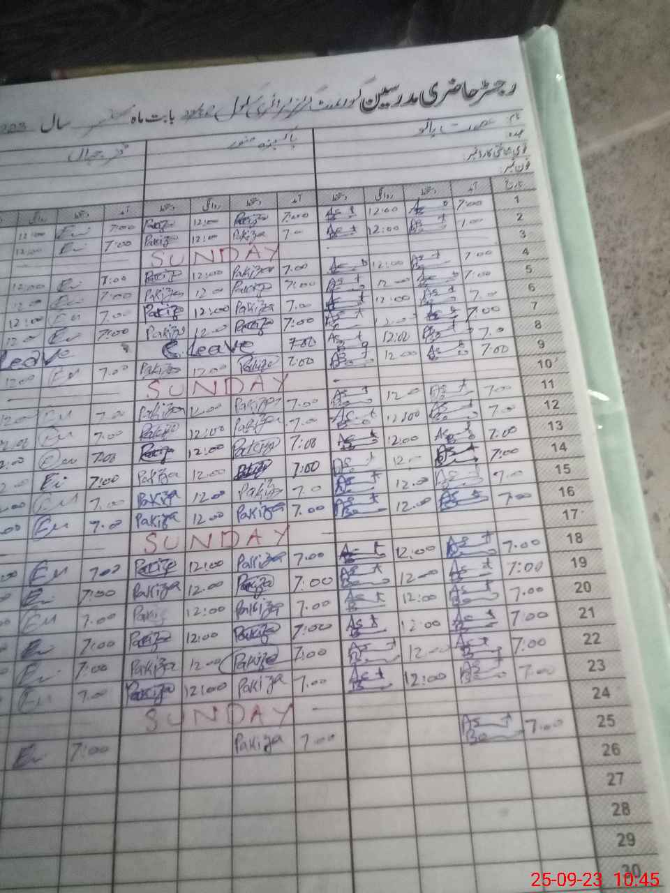 | CNIC | Full Name | Designation | R/C | Absence During Last Calender Month |