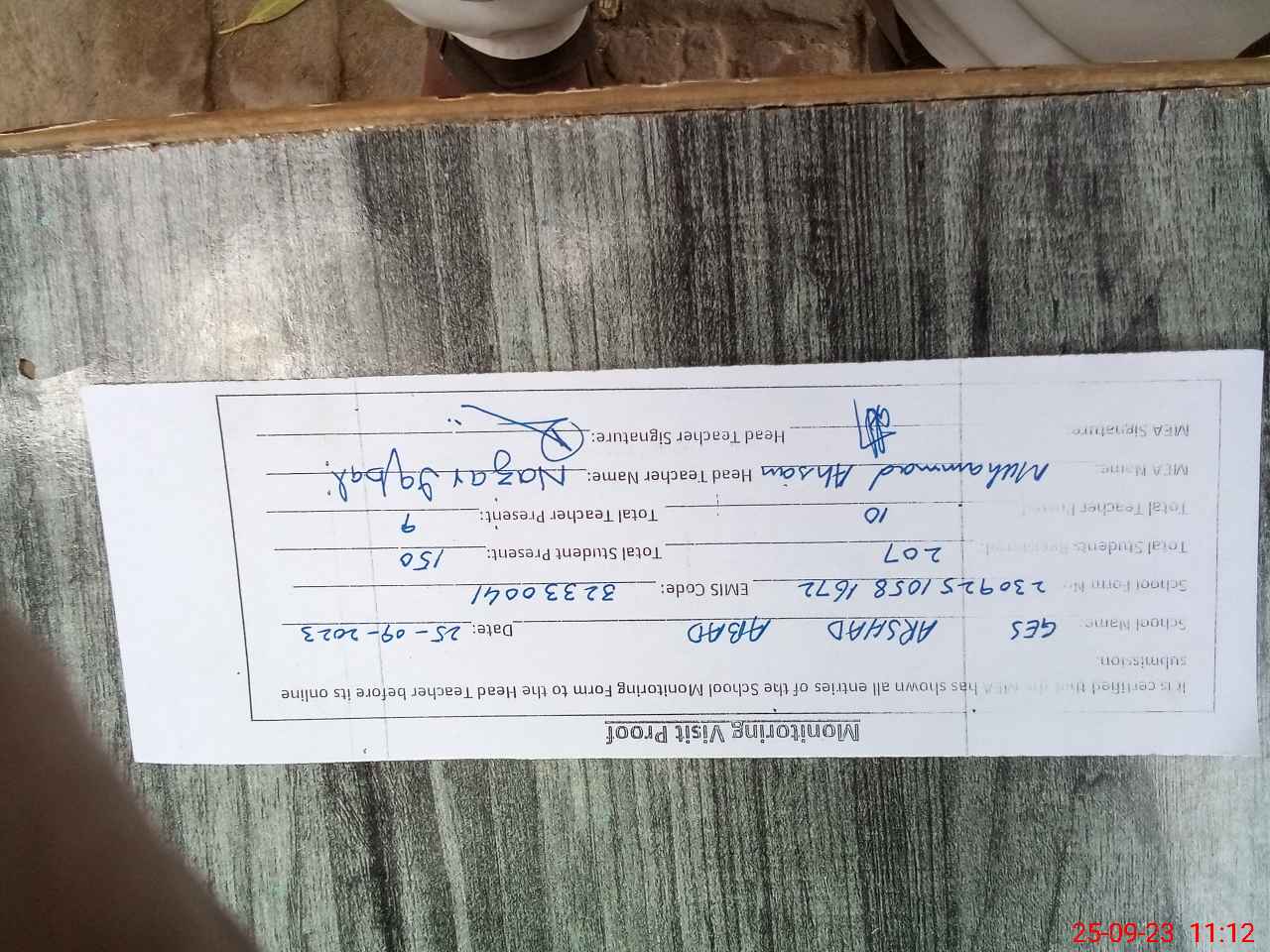 | EMIS Code: 32330041 | Name of School: GES ARSHAD ABAD | |||