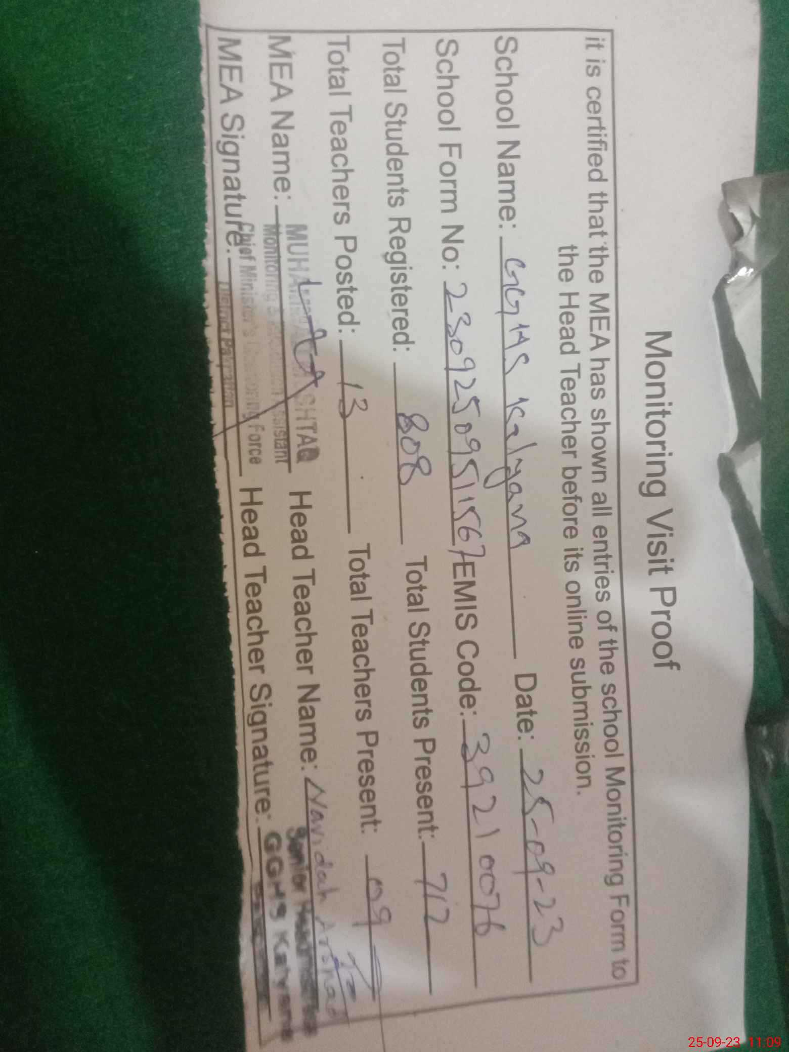 | EMIS Code: 39210076 | Name of School: GGHS KALYANA | |||