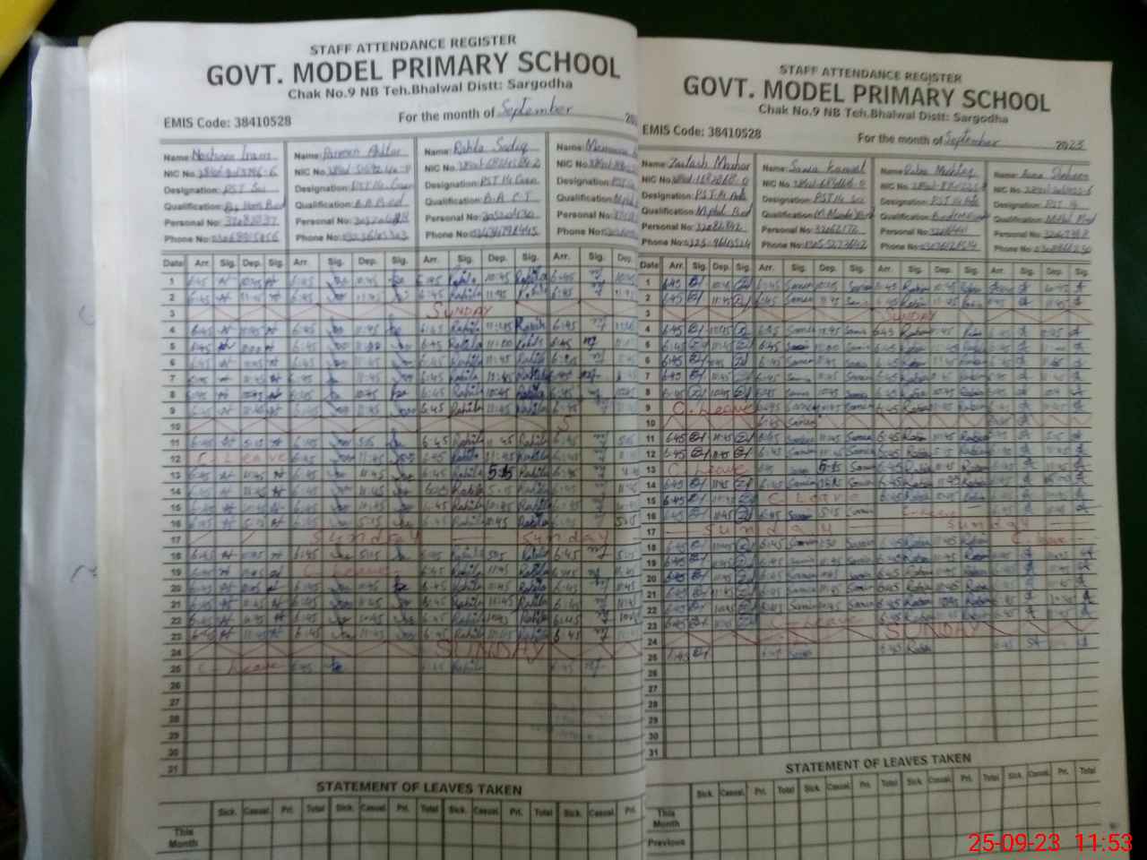 | CNIC | Full Name | Designation | R/C | Absence During Last Calender Month |