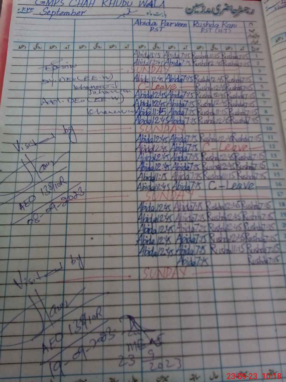 | Name: RU**** RA**** Designation: (School Headmaster's/Headmistress's) PST Phone/Cell Number: 03**** |