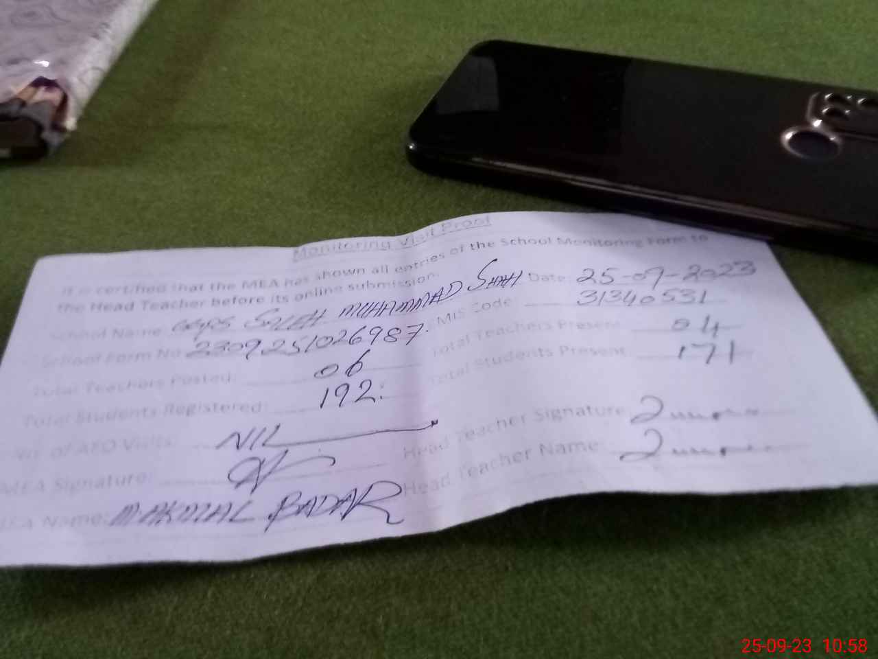 | Certified that this School was Inspected by the Undersigned MEA/DMO Today and the Information Stated Above is as Per Record. | |||||
