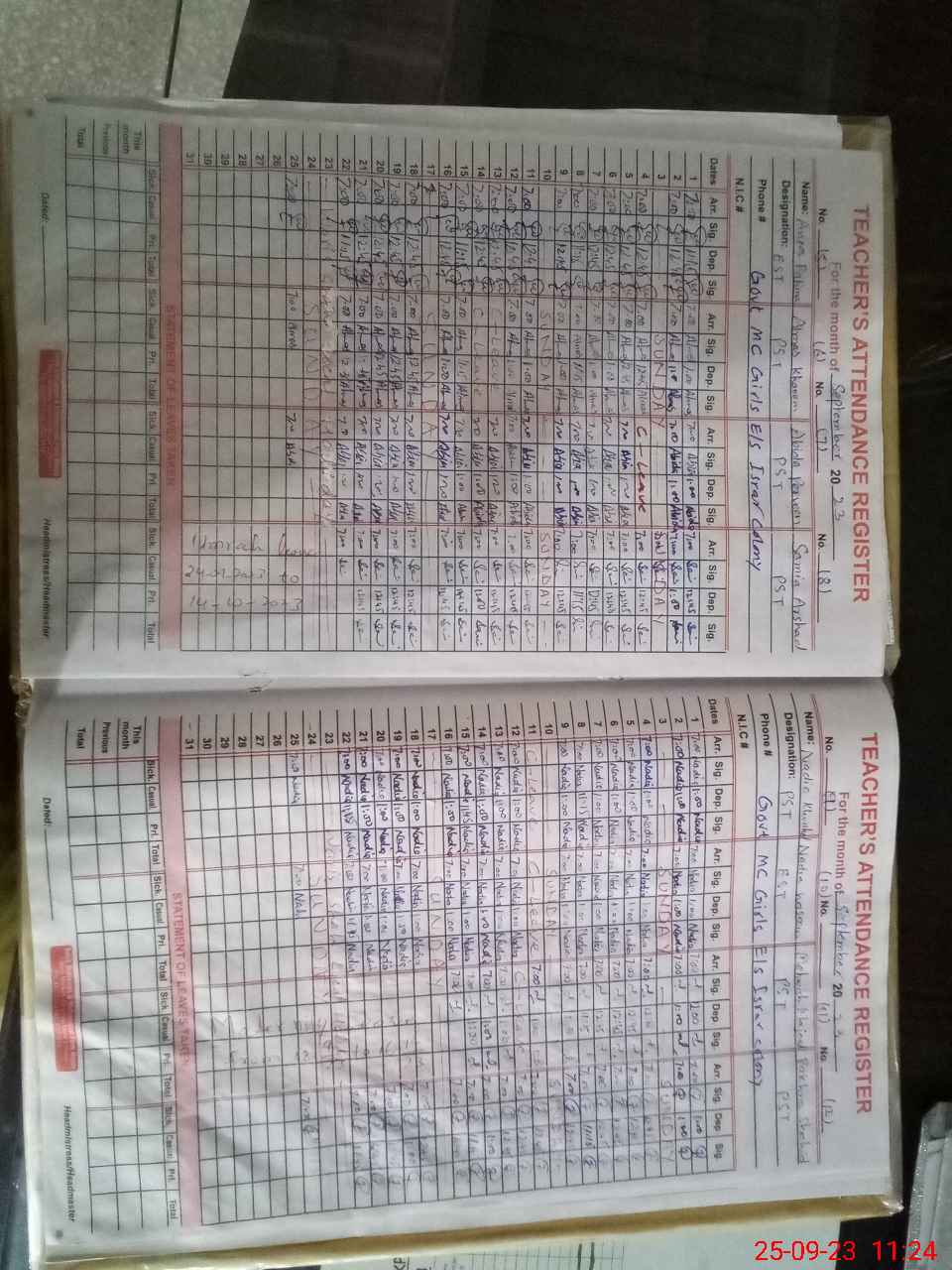 | CNIC | Full Name | Designation | R/C | Absence During Last Calender Month |