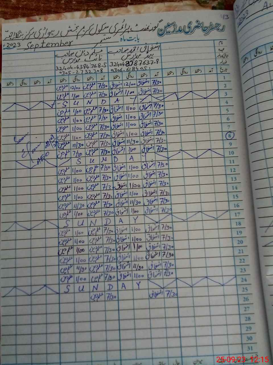 | Name: IS**** AH**** Designation: (School Headmaster's/Headmistress's) ESE HEADMASTER Phone/Cell Number: 03**** |