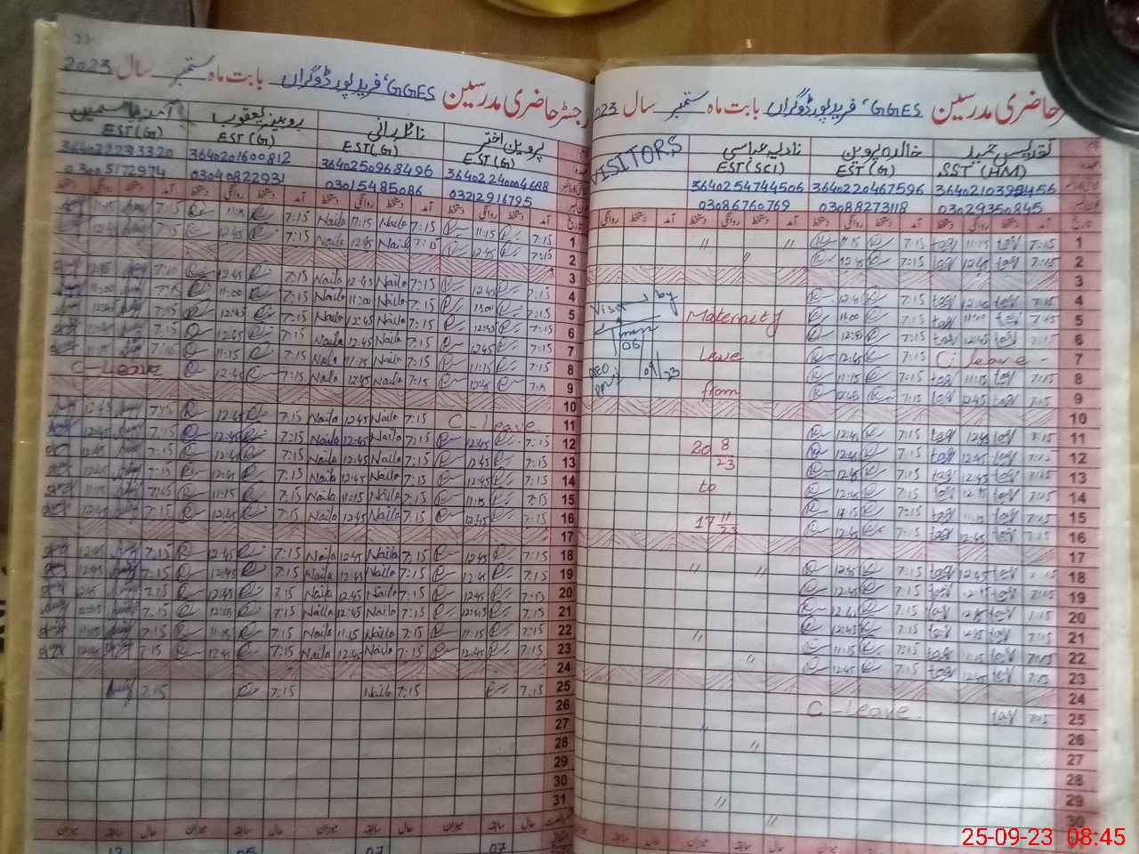 | Leave | Duty | Absent | Maternity | Medical | Ex- Pak |