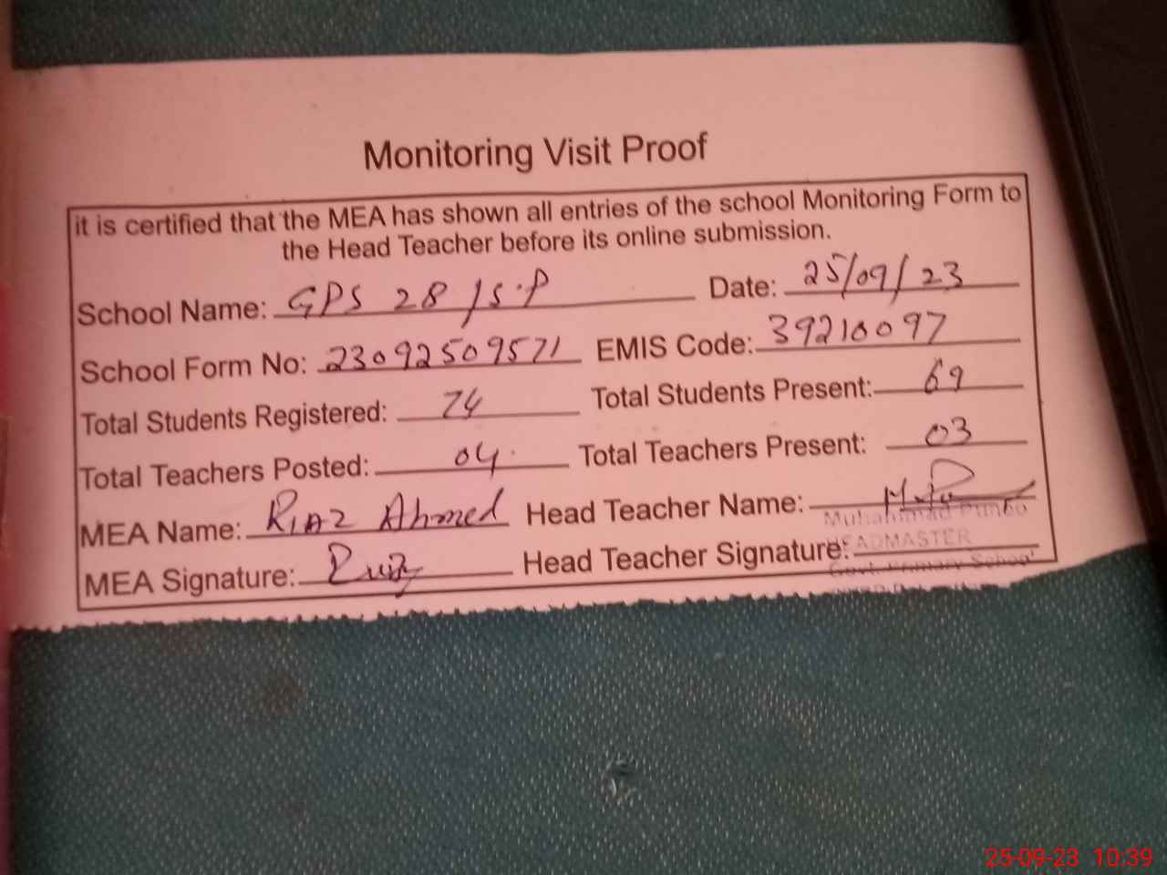 | Name: MU**** PU**** Designation: (School Headmaster's/Headmistress's) PST Phone/Cell Number: 03**** |