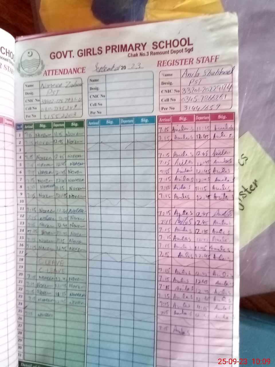 | CNIC | Full Name | Designation | R/C | Absence During Last Calender Month |