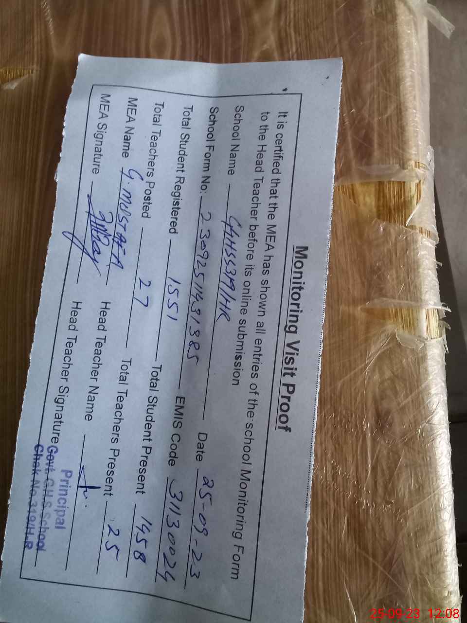 | Certified that this School was Inspected by the Undersigned MEA/DMO Today and the Information Stated Above is as Per Record. | |||||