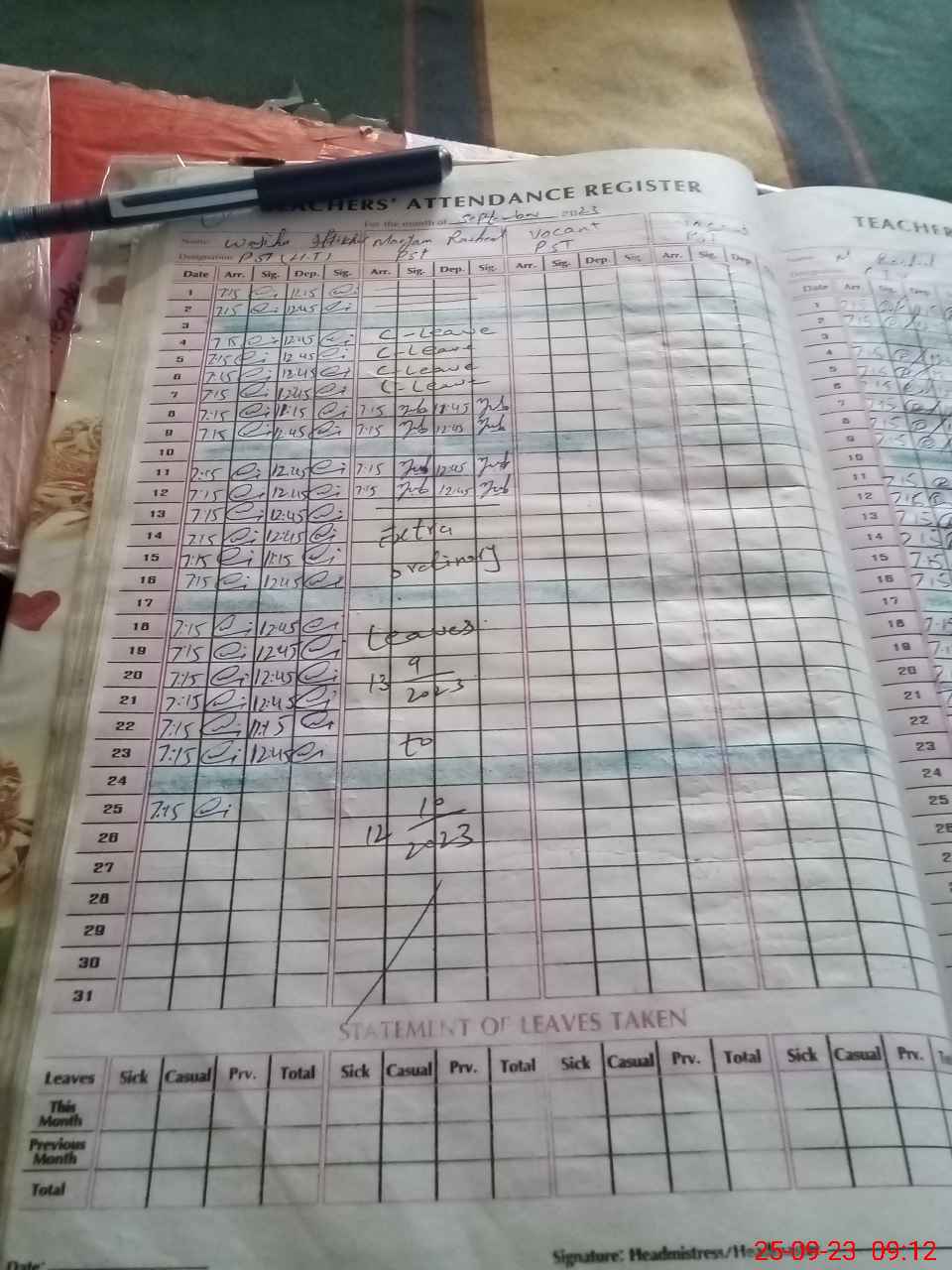 | 31**** | Ma**** Ra**** | 1 | 10 | 0 | 0 | 0 | 10 | 0 | 0 | 0 | 0 | Absent (Un-Authorized) | |