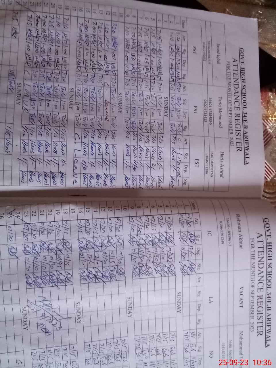 | Name: LI**** AL**** Designation: (School Headmaster's/Headmistress's) S.H.M Phone/Cell Number: 03**** |
