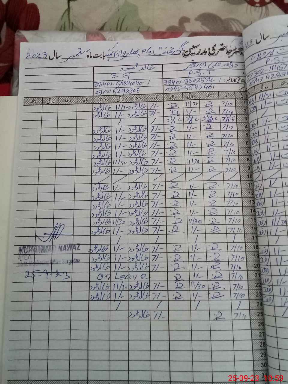 | Name: AM**** AL**** Designation: (School Headmaster's/Headmistress's) PST Phone/Cell Number: 03**** |