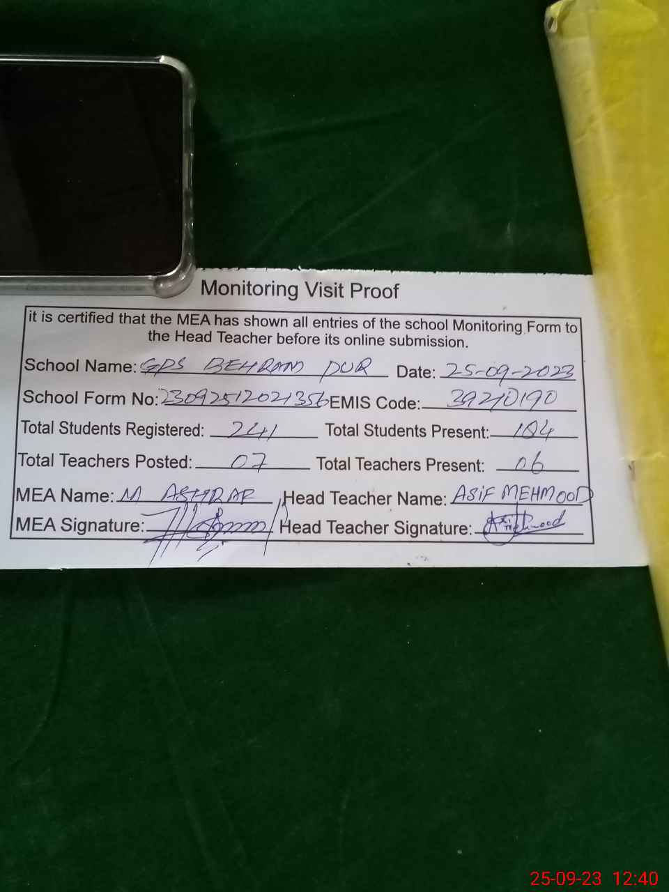 | Certified that this School was Inspected by the Undersigned MEA/DMO Today and the Information Stated Above is as Per Record. | |||||