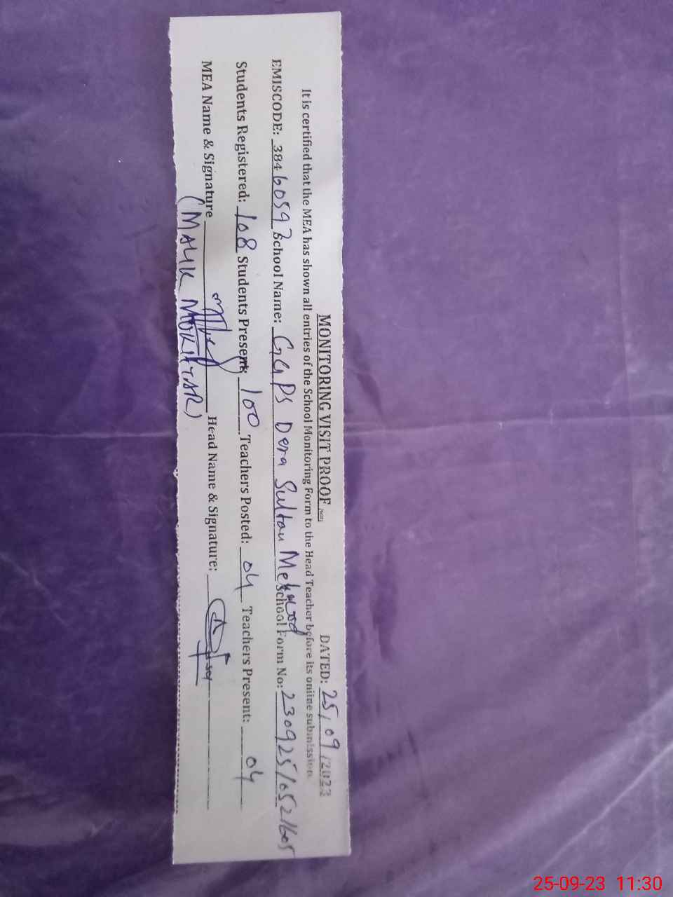 | EMIS Code: 38460597 | Name of School: GGPS DERA SULTAN MEHMOOD | |||