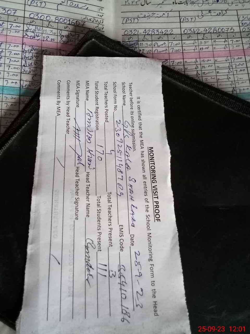 | Name: Ka**** Al**** Designation: (School Headmaster's/Headmistress's) PTC/JV Phone/Cell Number: 03**** |