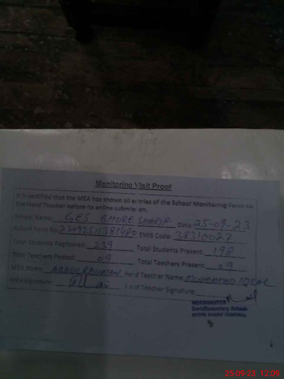 | EMIS Code: 38310027 | Name of School: GES BHORE SHARIF | |||