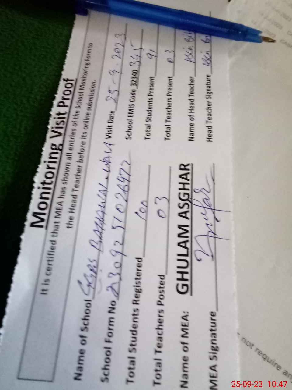 | EMIS Code: 32340345 | Name of School: GGPS BAHAWAL WALA | |||