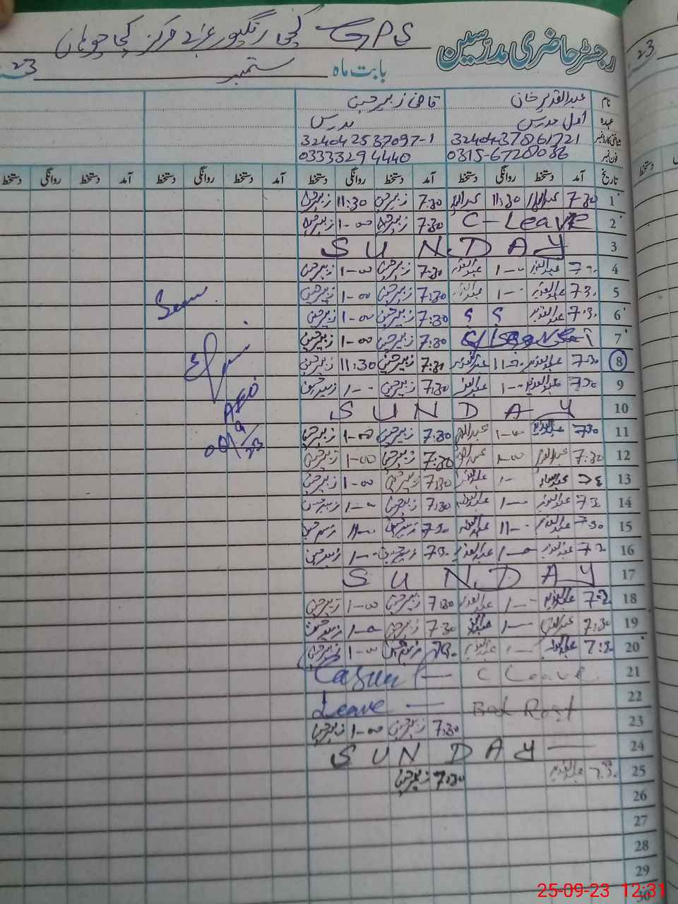| Name: AB**** QA**** KH**** Designation: (School Headmaster's/Headmistress's) PST HEAD Phone/Cell Number: 03**** |
