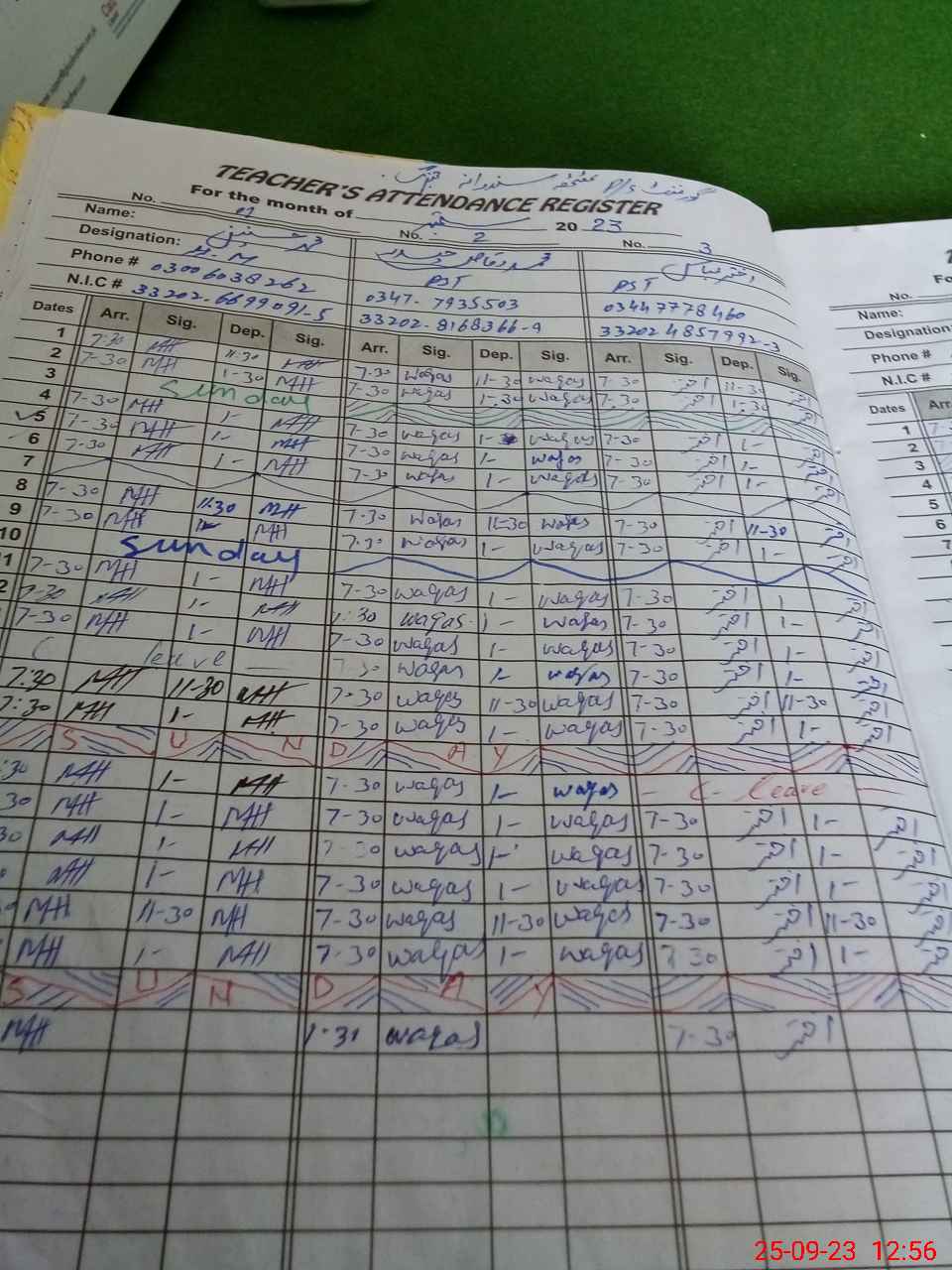 | CNIC | Full Name | Designation | R/C | Absence During Last Calender Month |