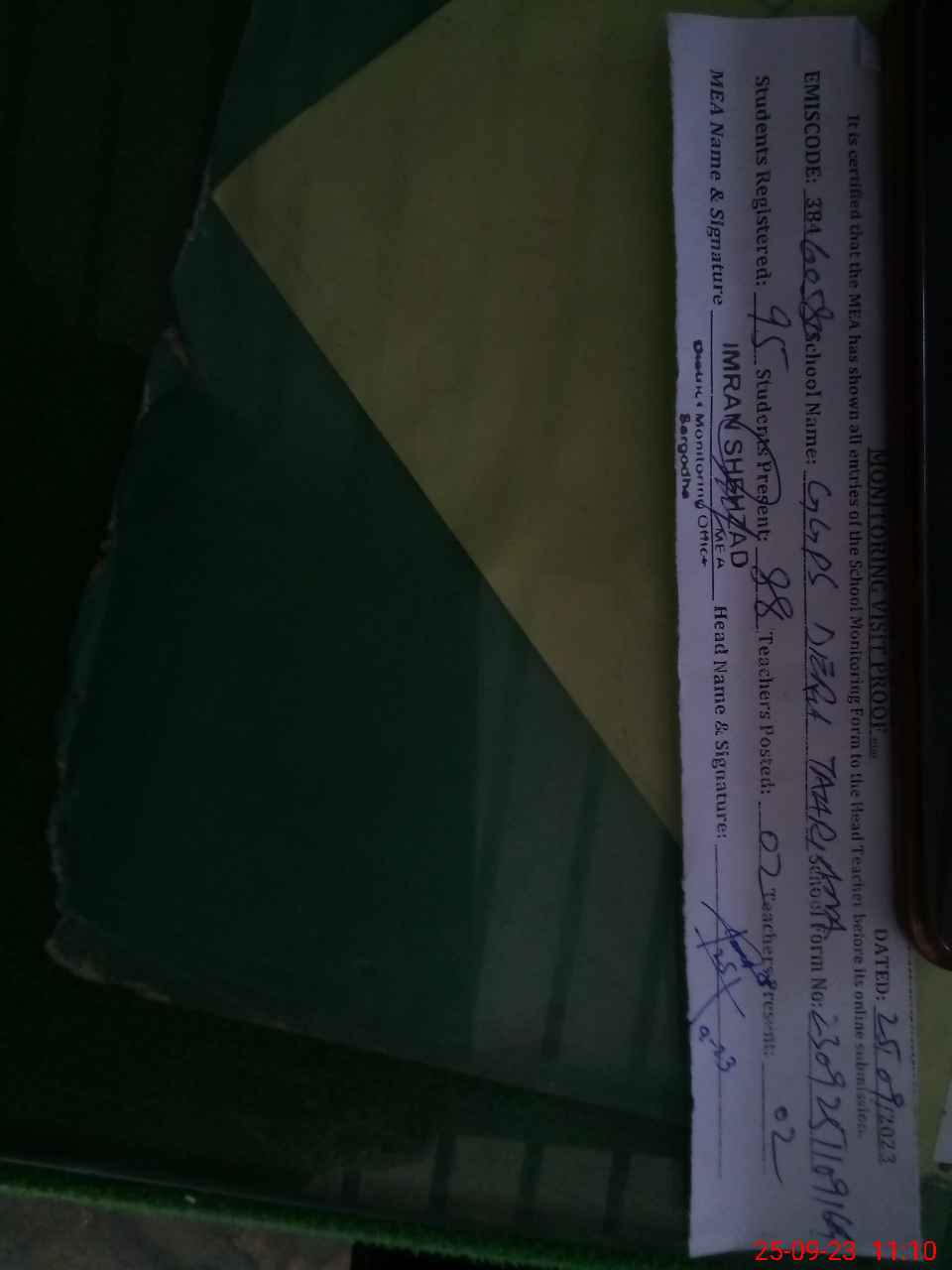 | Monitoring Date: 25-09-2023 | Start Time: 25-09-2023 11:03 AM | End Time: 25-09-2023 11:11 AM | Name of MEA: IM**** SH**** | |