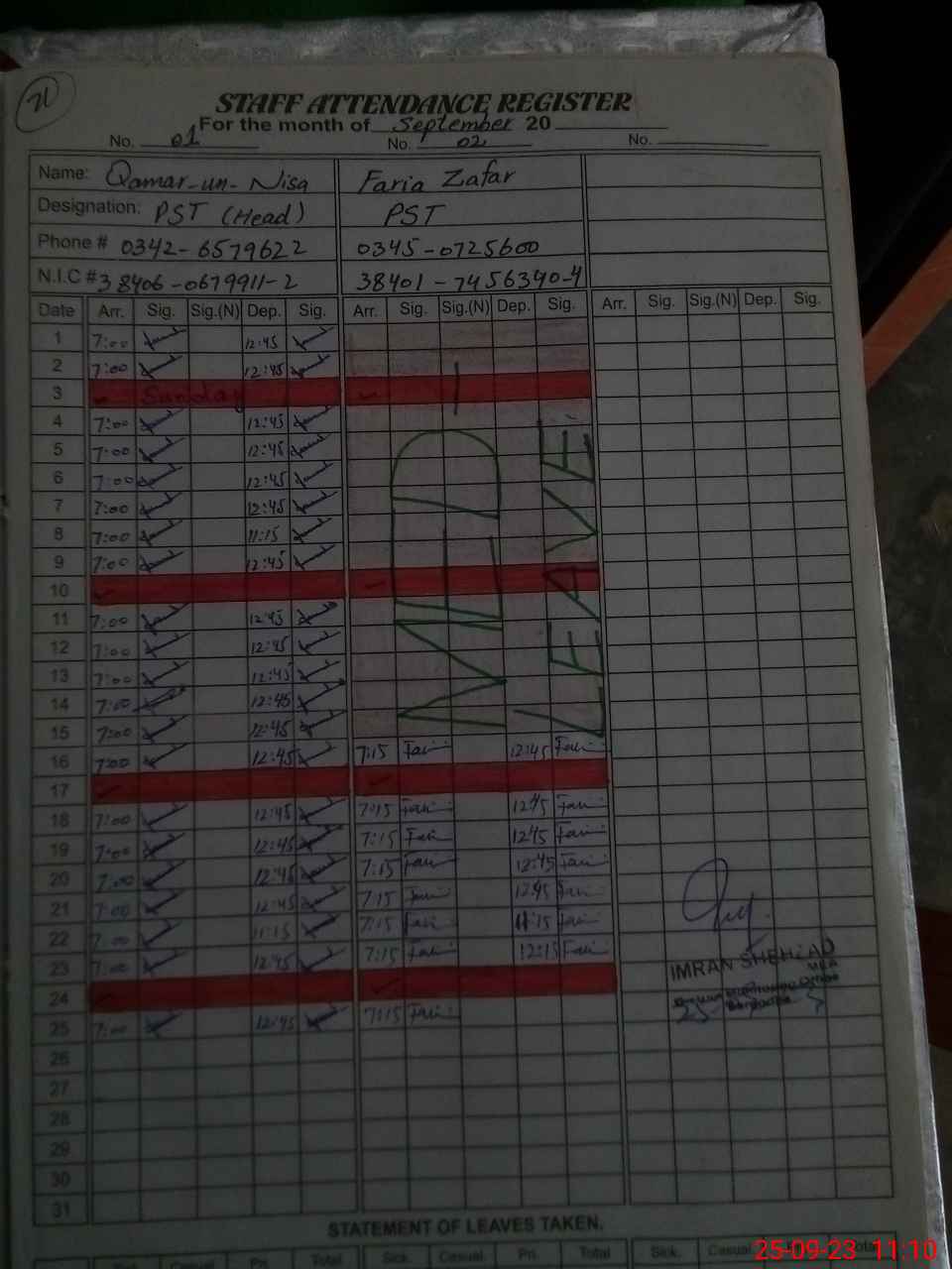 | Name: Qa**** UnNi**** Designation: (School Headmaster's/Headmistress's) PST Phone/Cell Number: 03**** |