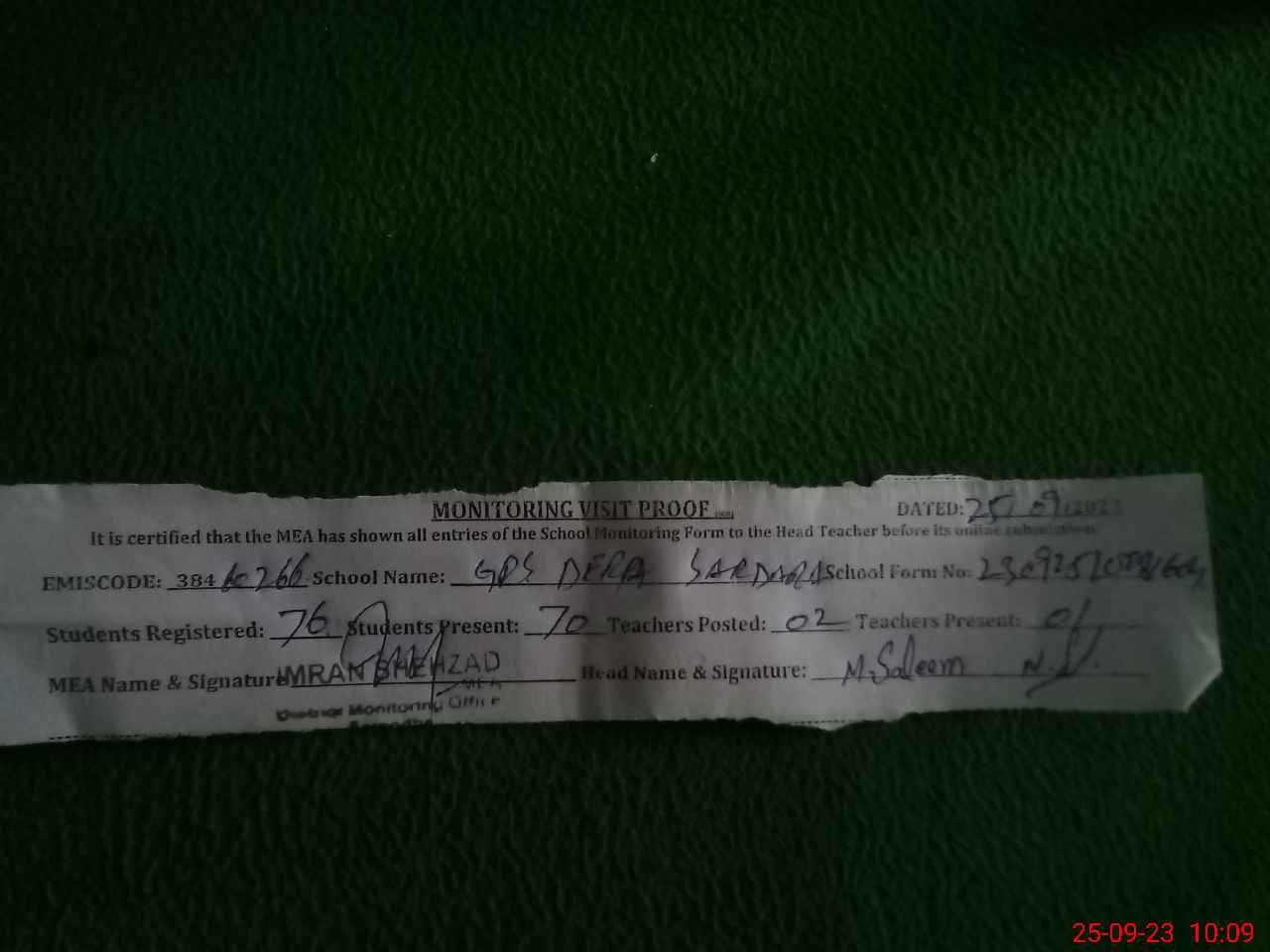 | Monitoring Date: 25-09-2023 | Start Time: 25-09-2023 10:01 AM | End Time: 25-09-2023 10:10 AM | Name of MEA: IM**** SH**** | |