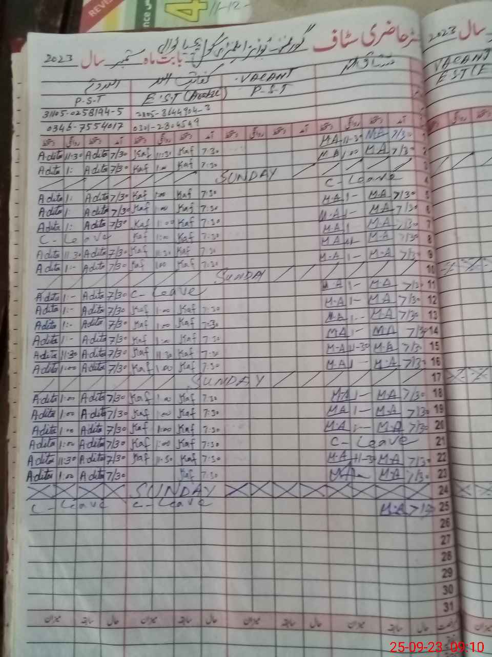 | Name: Sy**** Al**** Ab**** Sh**** Designation: (School Headmaster's/Headmistress's) Sst Phone/Cell Number: 03**** |
