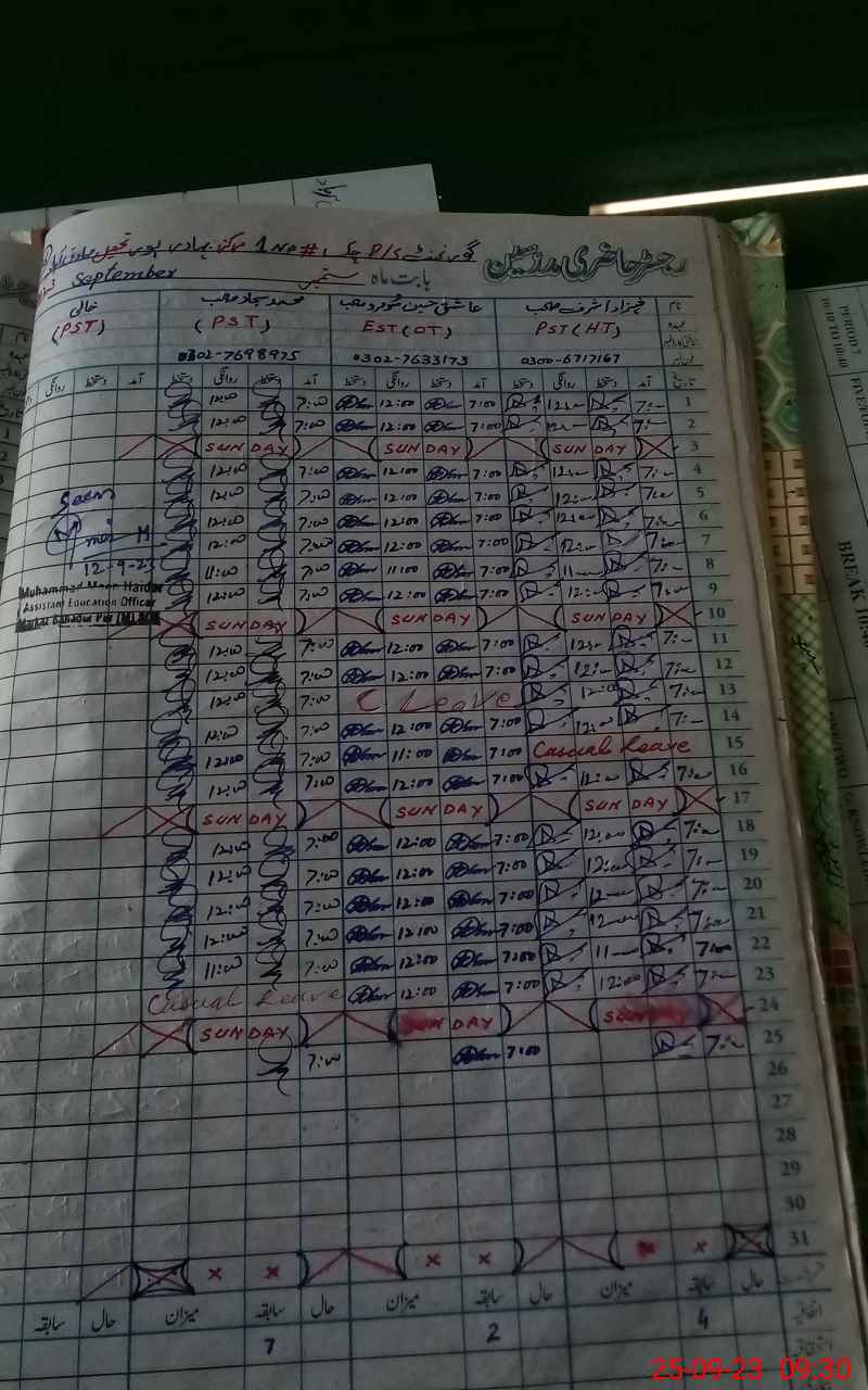 | Name: Sh**** As**** Designation: (School Headmaster's/Headmistress's) PST Phone/Cell Number: 03**** |