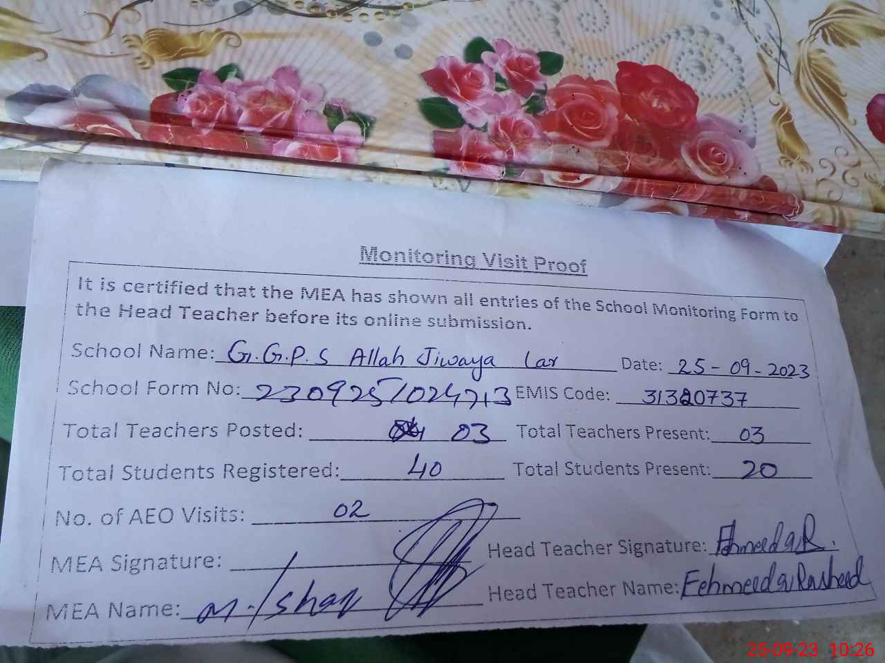 | EMIS Code: 31320737 | Name of School: GGPS ALLAH JIWAYA LARR | |||