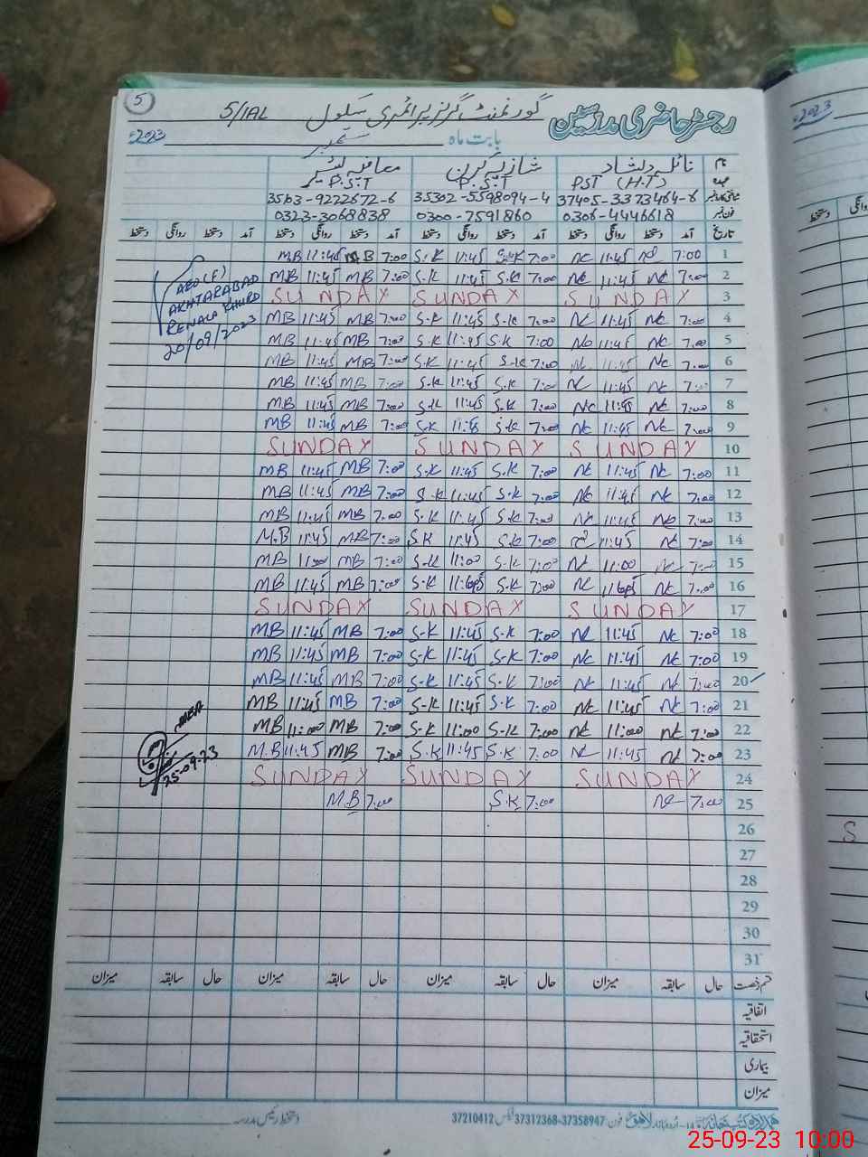 | Name: Sh**** Ki**** Designation: (School Headmaster's/Headmistress's) PST Phone/Cell Number: 03**** |