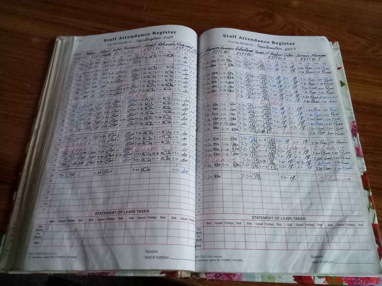 | Leave | Duty | Absent | Maternity | Medical | Ex- Pak |