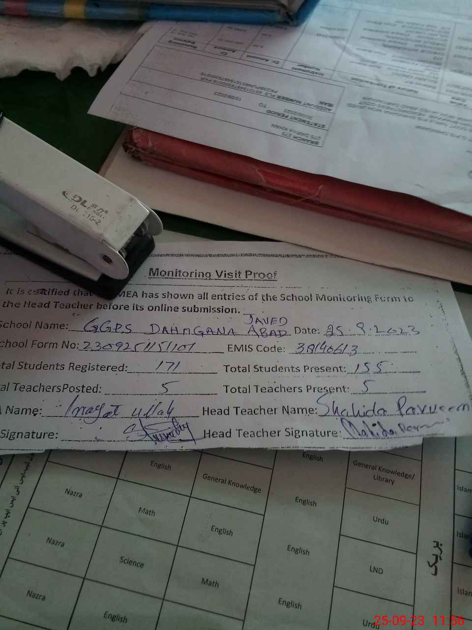 | EMIS Code: 38140613 | Name of School: GGPS DHAGANA JAVED ABAD | |||