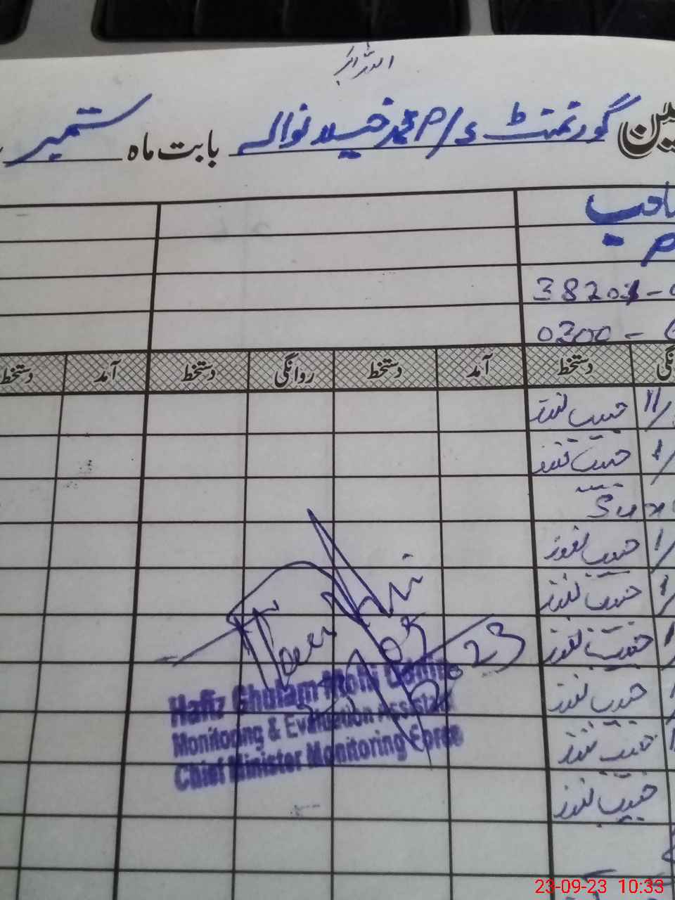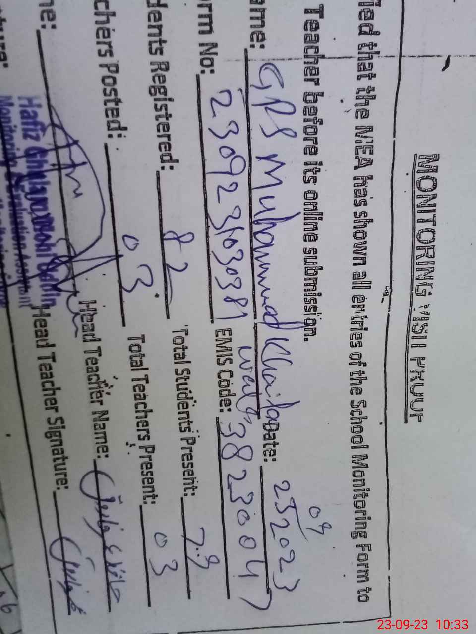 | Name: Am**** Ul**** Designation: (School Headmaster's/Headmistress's) PST/PTC/JV Phone/Cell Number: 03**** |